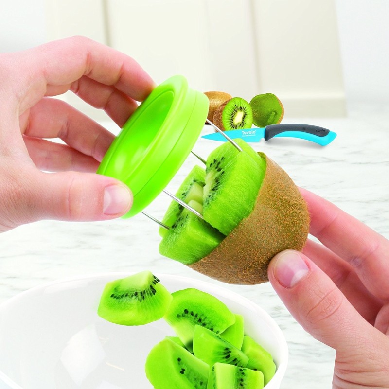 Представяме ви иновативното решение за белене и рязане на киви - белачка и резачка 2 в 1. Този кухненски ръчен уред ще ви помогне да се насладите на свежите и вкусни киви по-лесно и бързо от всякога.