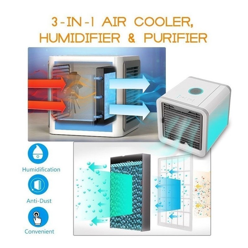 Арктик Кулър 3в1 е идеалното решение за всяко помещение, като предлага несравнимо удобство и ефективност. За разлика от стандартните климатици, този персонален климатик няма да ви смущава със студ или сух въздух. Вместо това, той овлажнява въздуха, филтрира го и го пречиства, създавайки приятна и здравословна среда във вашето домакинство или работно място.