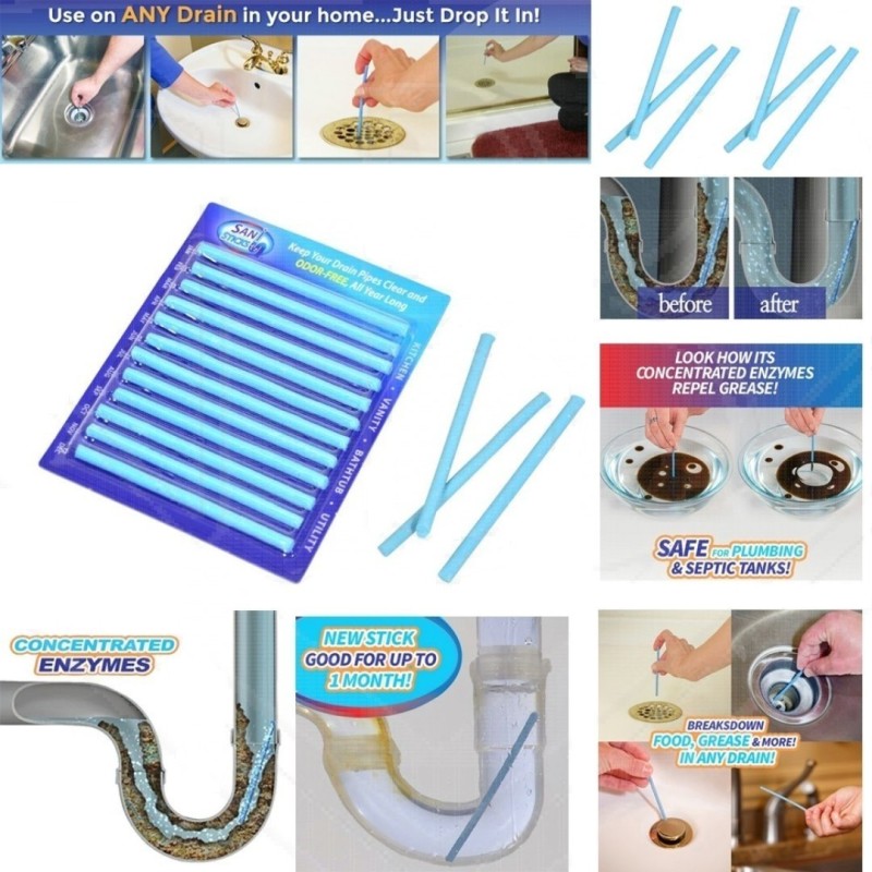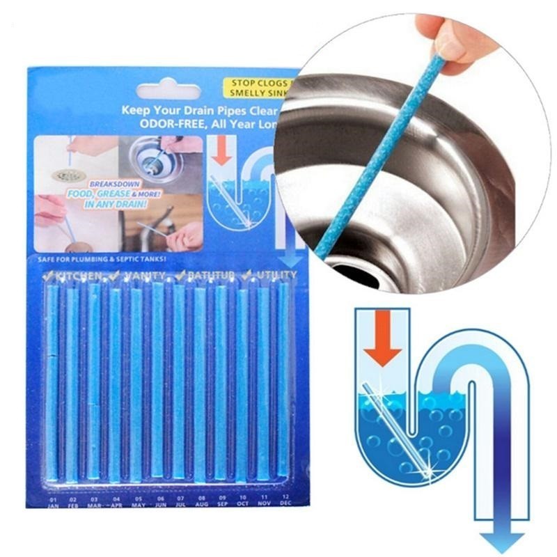 Комплектът включва 12 пръчици, които са достатъчни за 1 година употреба. Това означава, че можете да се насладите на безпроблемно почистване и да забравите за неприятната миризма от мивката или запушването на канала в банята.