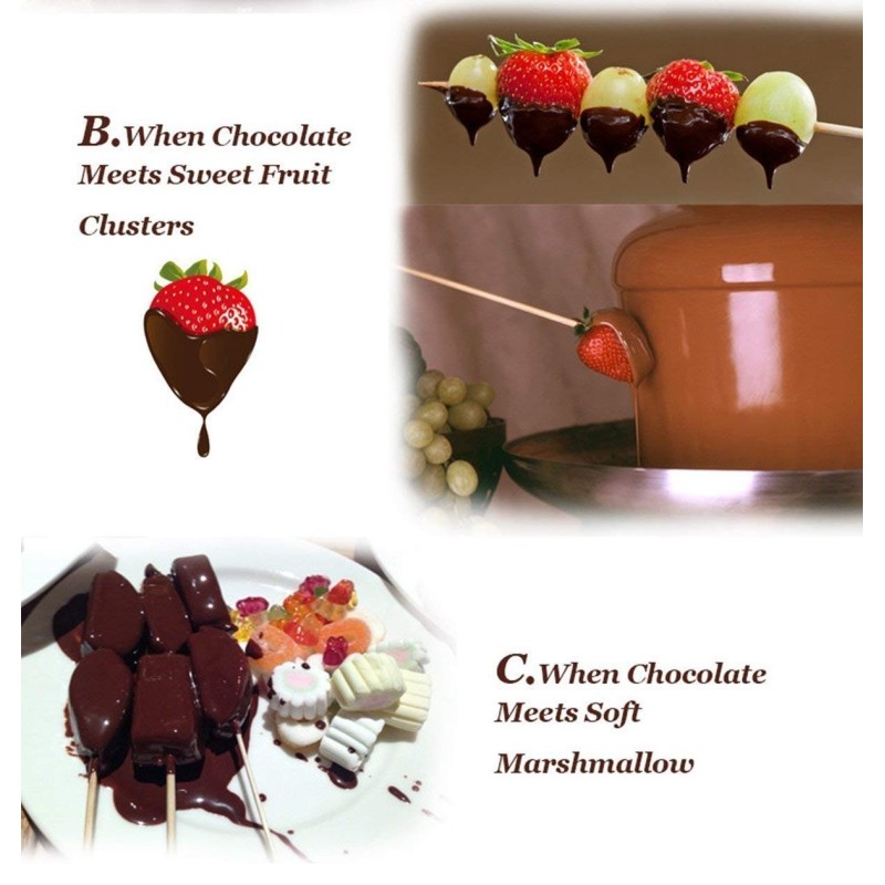 "С Мини шоколадовия фонтан ще превърнете всяко събитие в незабравимо изживяване! Този модерен и функционален фонтан за шоколадово фондю е идеалният аксесоар за всяка вечеря, парти или специален повод. Представете си течния шоколад, който се стича от горещия фонтан и вие имате възможността да потопите в него всякакви вкусни лакомства - плодове, бисквити, бишкоти и много други.