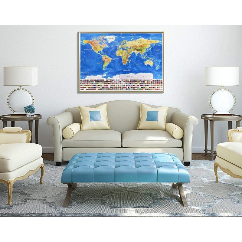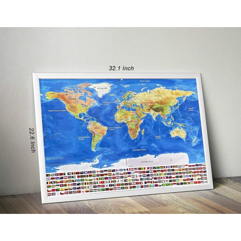 Картата е опакована в твърд, картонен тубус, който я прави лесна за пренасяне и подходяща за съхранение. С размери 83 х 60 х 0,2см, тя е достатъчно голяма, за да покаже всички детайли на световната география.