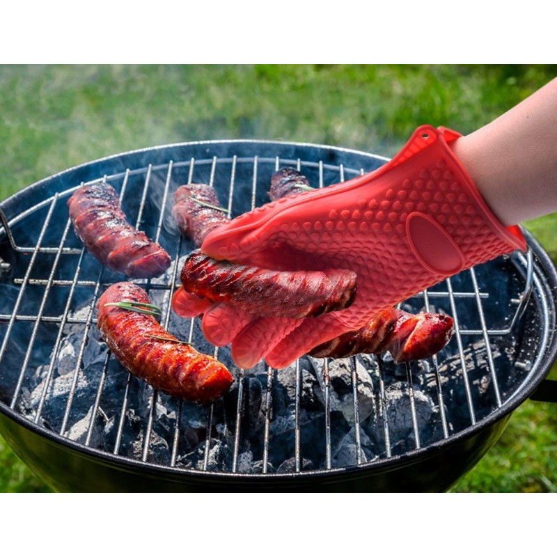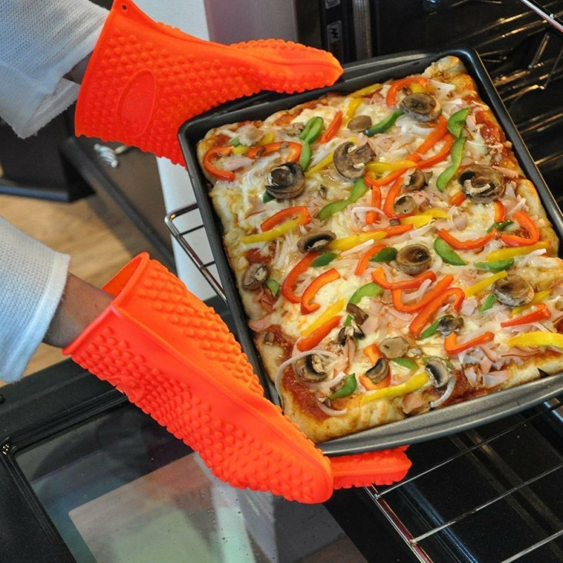 Специалният релефен дизайн на ръкавицата предотвратява хлъзгането и осигурява стабилност и контрол върху горещите предмети. Дългият маншет на ръкавицата предпазва вашите ръце от контакт с горещата фурна и ви осигурява максимален комфорт и защита.