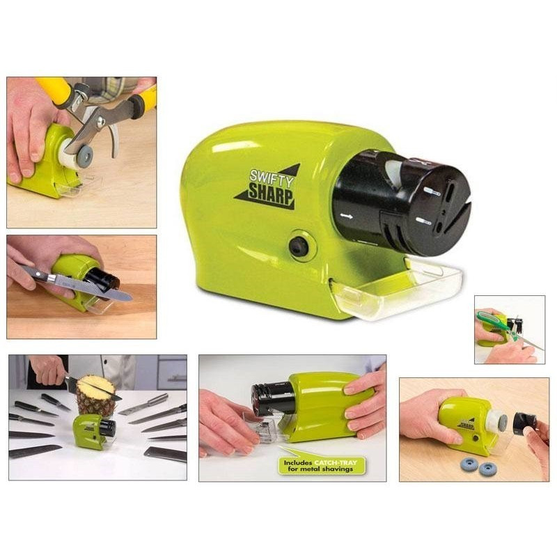 Swifty Sharp е подходящо не само за ножове, но и за прецизни ръчни инструменти, ножици и по-големи домакински инструменти за разрязване. То е съвместимо с всички видове ножове - гладки, назъбени, сатъри и много други. Компактното и леко точило е лесно за съхранение и може да бъде поставено в чекмедже, скрин или шкаф.