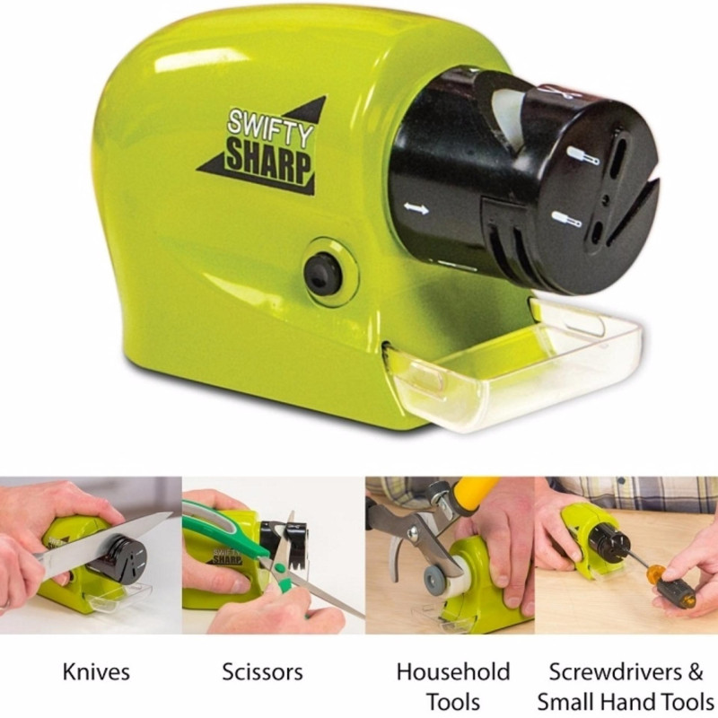 Swifty Sharp е електрическо точило за ножове и инструменти, което ще ви помогне да възстановите остриетата на всякакви тъпи ножове. Това полупрофесионално точило е подходящо за точене на всяко едно острие и ще ви позволи да превърнете обикновените ножове в остри като бръснач прибори за рязане във вашата кухня.