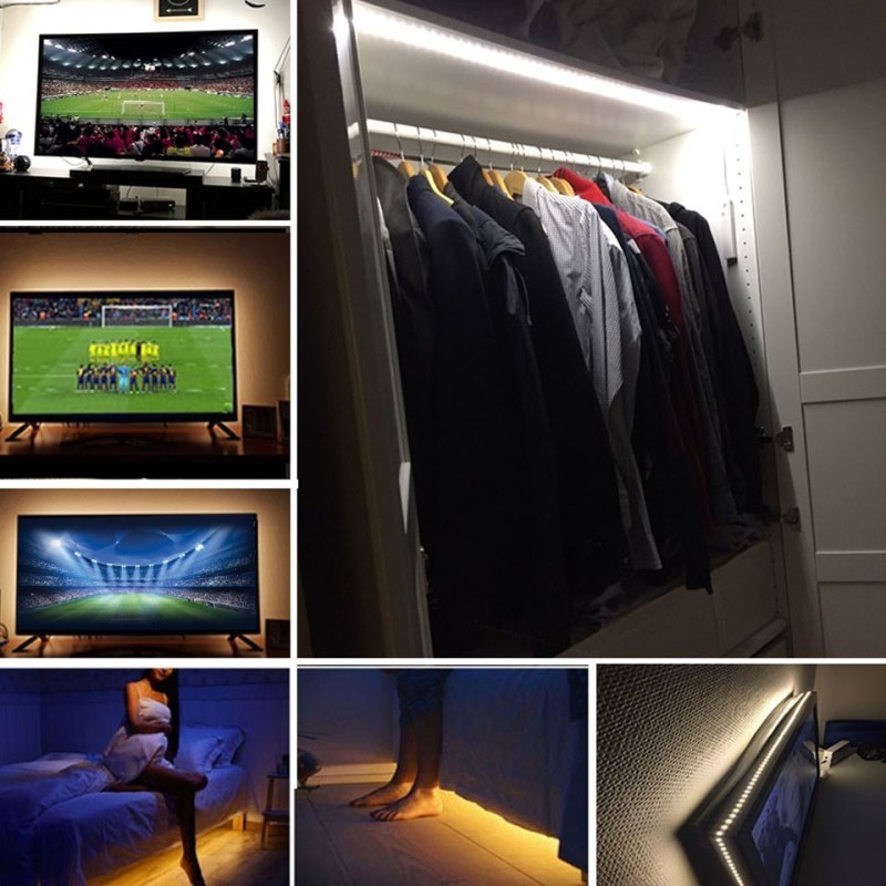 Осветете вашата гардероб, кухня или стълбище с нашата LED лента с PIR датчик за движение. Този гъвкав и самостоятелно задвижван комплект е идеалното нощно осветление за вашия дом. Сензорът за движение активира лентата, когато отчете движение и светлина. Ако помещението е достатъчно осветено от друг източник или дневна светлина, уредът няма да се задейства. Този комплект се захранва с батерии, което го прави перфектен за аварийно осветление или места без електрическо захранване.