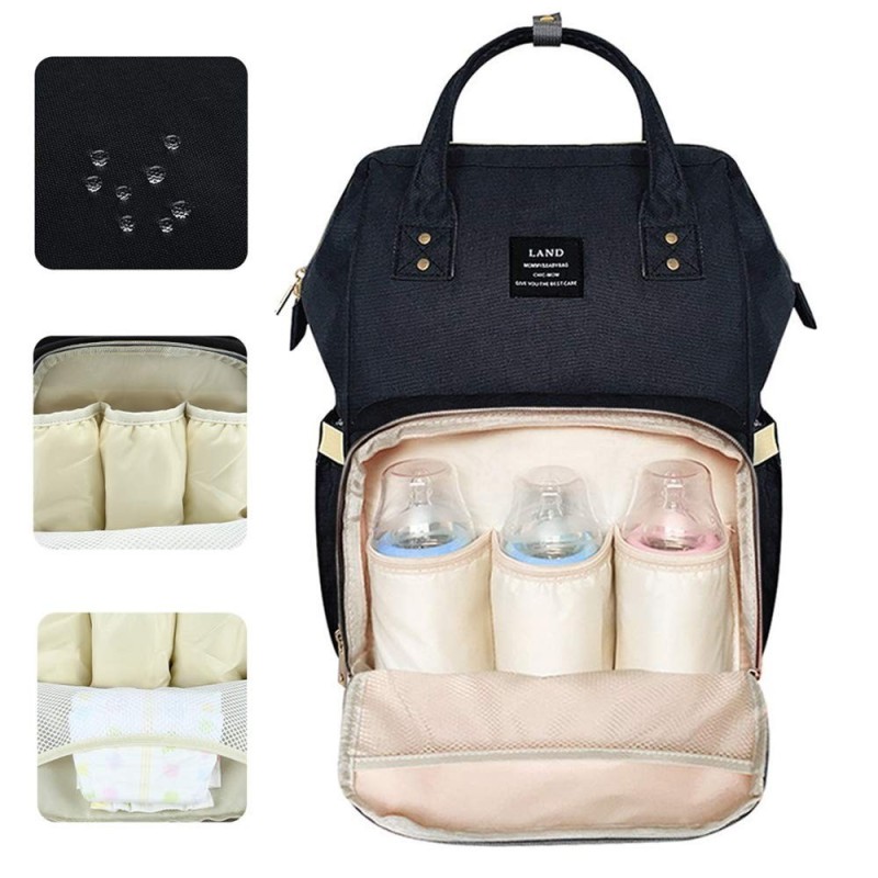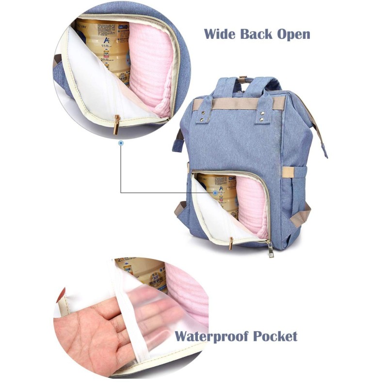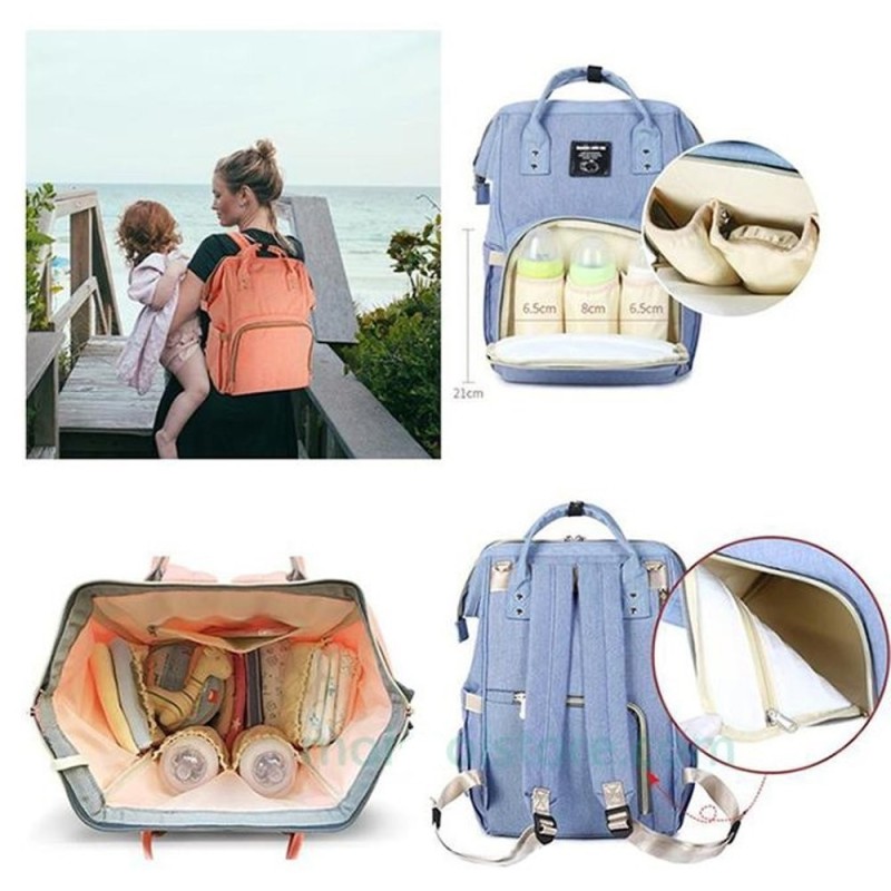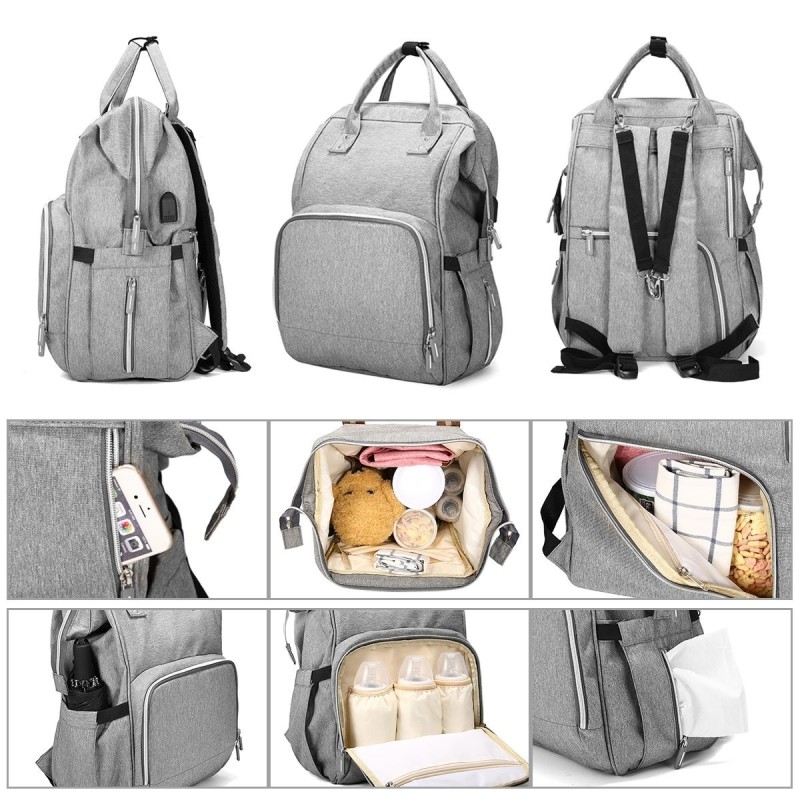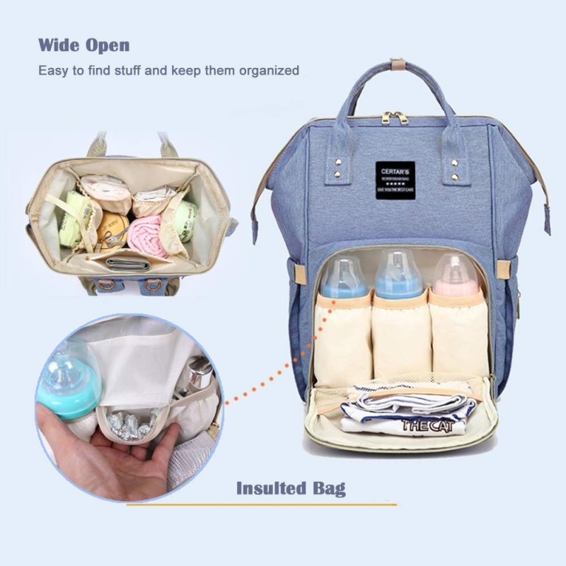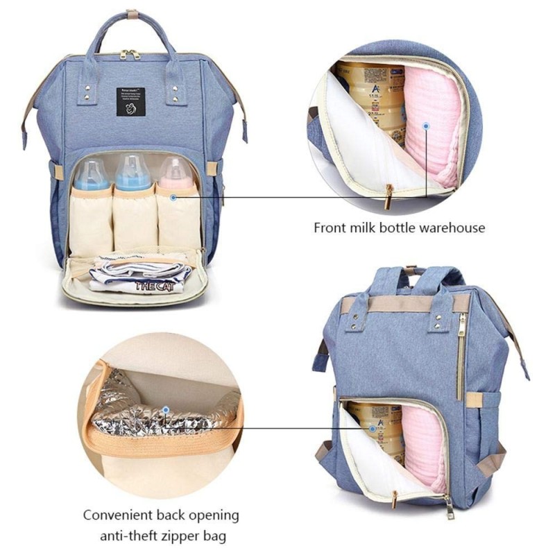 Луксозна, многофункционална, стилна и практична раница, която побира всички бебешки принадлежности, подходяща за поставяне на детска количка с голям отвор отзад за лесен достъп до артикулите в долната част на чантата.