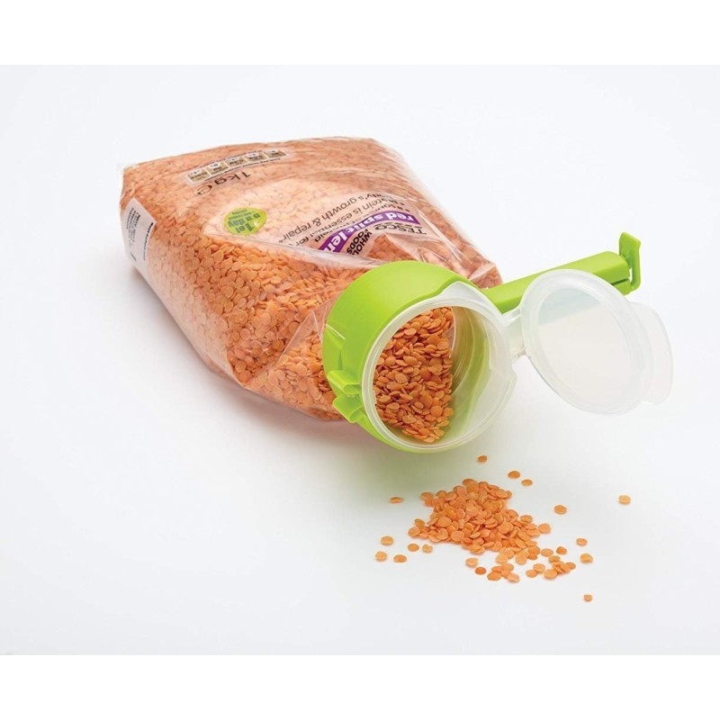 Щипка за торбички с капачка за отсипване на насипни продукти