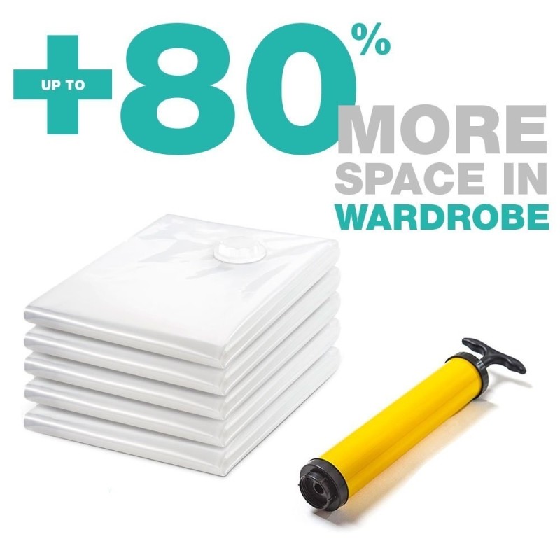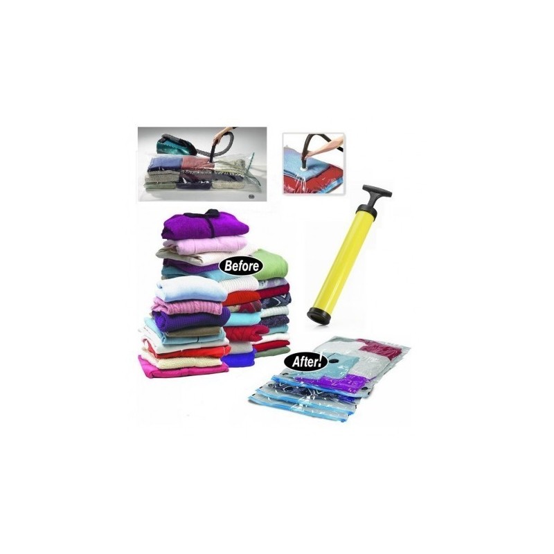 Вакуум помпа за механично изсмукване на въздух от вакуумни торби и пликове. Удобна за пренасяне, можете да я сложите в куфар, сак или друг багаж. С помощта на тази ръчна помпа, можете да съхранявате своите дрехи, постелки, завивки и други текстилни изделия безпристрастно и компактно. Изсмукването на въздуха от вакуумните пликове ще гарантира, че вашите вещи ще останат свежи и без миризми.