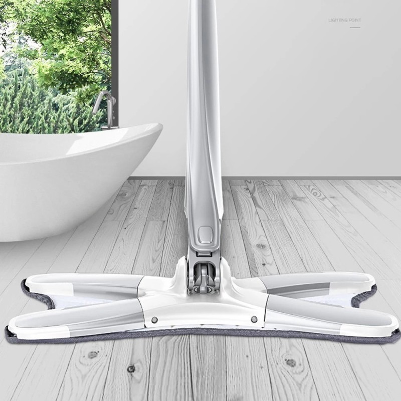 Модерен плосък моп с въртяща се Х образна глава и функция за самоизстискване на парцала