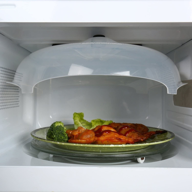 Този чисто нов аксесоар е задължителен за всяка микровълнова фурна. С полимерно защитени магнити, капакът се придържа здраво към тавана на вашата печка, предотвратявайки пръскането и разпиляването на храна. Просто покрийте я и оставете я в микровълновата фурна - няма повече нужда от почистване на стените на печката.
