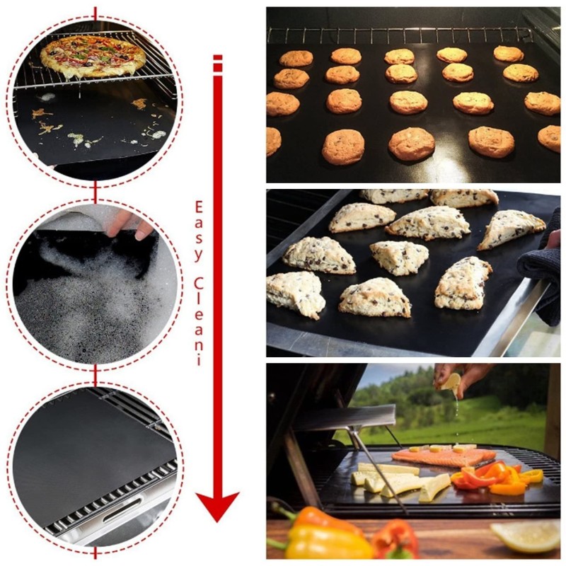 Нашето тефлоново фолио не изисква предварително омазняване и прави печенето на скара изключително лесно. След всяка употреба, просто го почистете с кухненска хартия и вече е готово за следващото приключение в кухнята. И най-доброто от всичко - то не отделя никакви токсични вещества и не мирише, осигурявайки ви сигурност и удоволствие при готвенето.