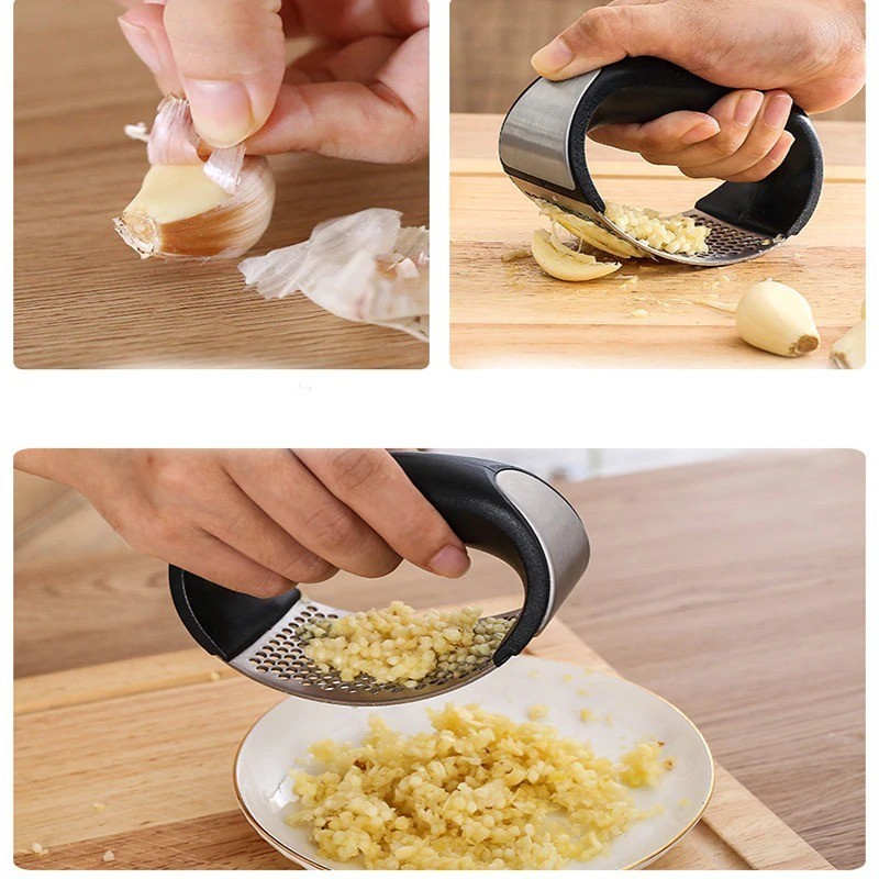 Тази многофункционална преса е снабдена с пластмасова дръжка, която е удобна за захващане и не позволява на миризмата на чесъна да се полепи по ръцете ви. Просто поставете чесъна върху дъската за рязане и натиснете ролката на пресата за няколко секунди. Резултатът ще бъде равномерно смляно съдържание с желаната консистенция.