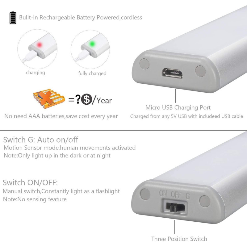 Представяме ви LED лампа с акумулаторна батерия и сензор за движение, с дължина 19 и 37 см. Тази осветителна система е идеална за всяка стая в дома Ви. Снабдена с акумулаторна батерия и кабел за зареждане през USB, тя е лесна за поддръжка и удобна за употреба.
