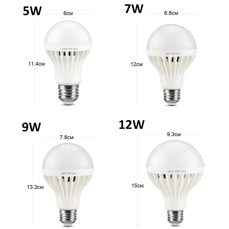 Светлината, която осигурява тази крушка, е студено бяла с температура от 6000k-6500k, която създава ярко и приятно осветление. Размерите на крушката варират според мощността: 5W - диаметър 6см, височина 11.4см; 7W - диаметър 6.8см, височина 12см; 9W - диаметър 7.8см, височина 13.3см; 12W - диаметър 9.3см, височина 15см.