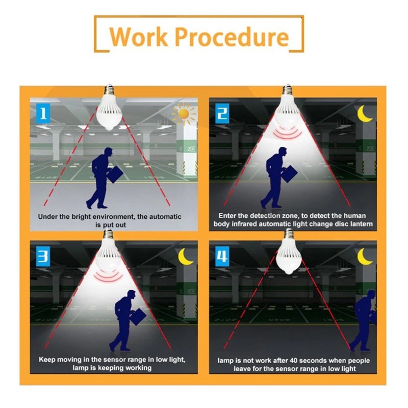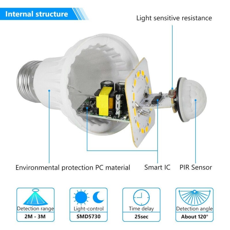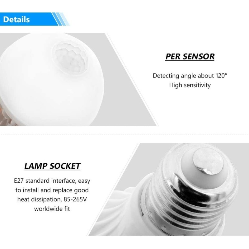 LED крушката със сензор за движение осигурява широк ъгъл на засичане от 120° и автоматично включване, когато е тъмно. След 30 секунди от последното движение, крушката автоматично изключва светлината, което ви дава допълнителна удобност и спестяване на енергия.