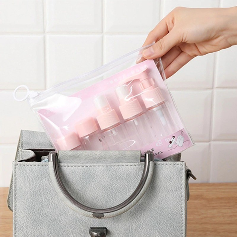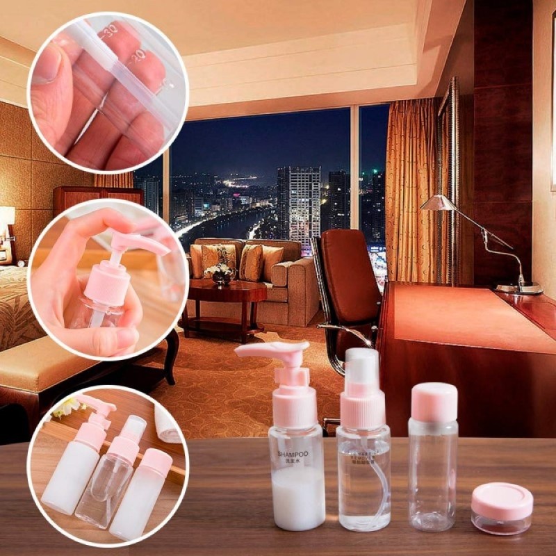 С тези пластмасови козметични контейнери ще можете да улесните транспортирането на течни продукти и да спестите място в куфара си. Те са идеални за пътуване със самолет, като съответстват на всички изисквания за пренос на течности в ръчния багаж.