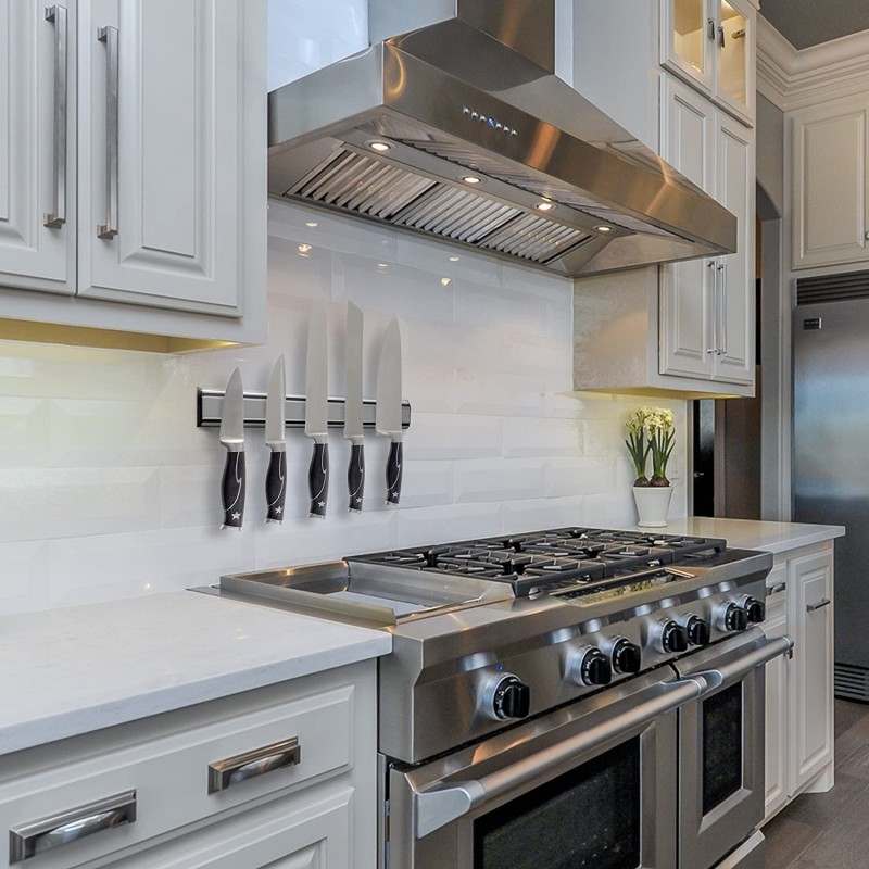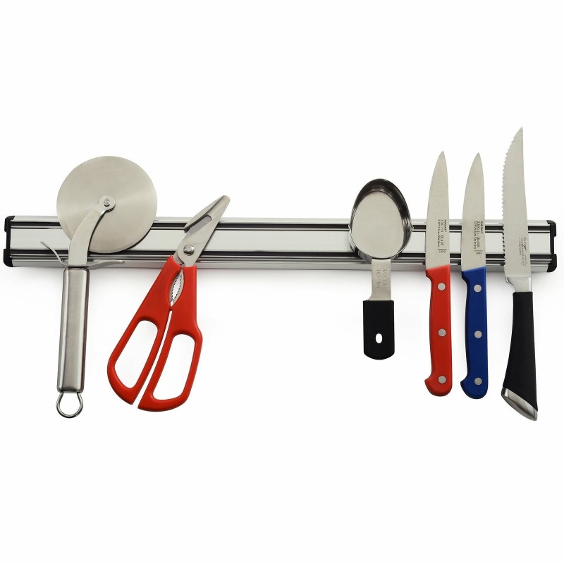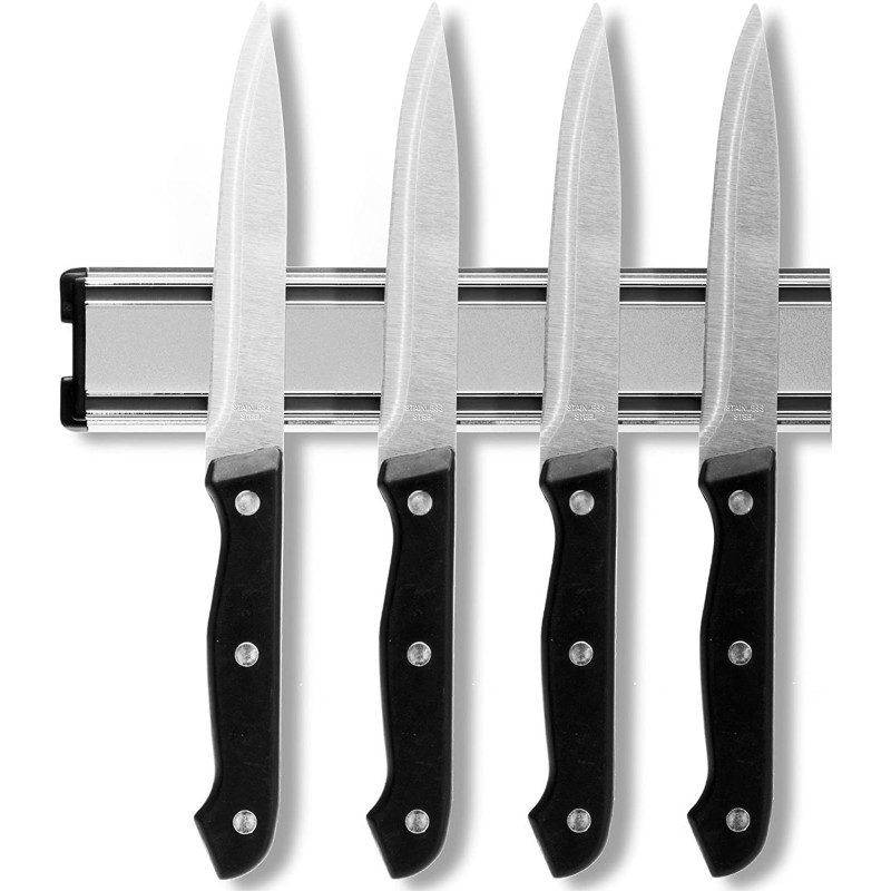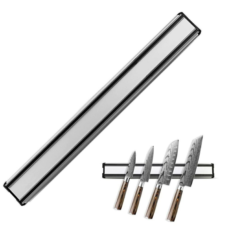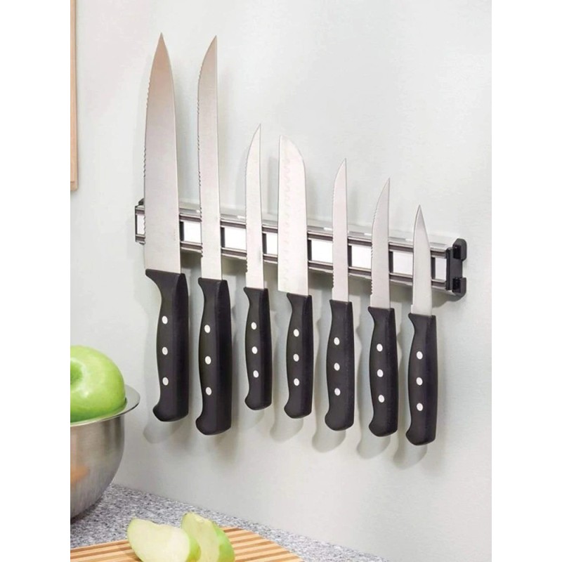 Представяме ви ефектната магнитна алуминиева поставка за кухненски ножове. Тази качествена поставка е идеалното решение, особено ако пространството във вашата кухня е ограничено. Монтира се лесно на стената с помощта на две болтчета и побира до 5-6 ножа или прибори, в зависимост от тяхната широчина.