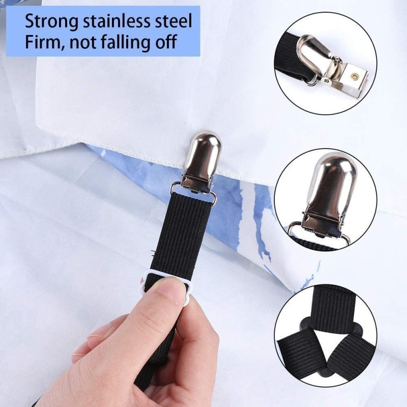 Тези щипки-държачи са идеални за ползване с различни видове домашен текстил, като спално бельо с ластик, обикновен долен чаршаф, протектор за матрак, покривало за легло, покривки за трапезни маси и различни видове калъфи. Те ще ви помогнат да задържите вашите чаршафи и други текстилни изделия на място, без да се преместват или спъват.