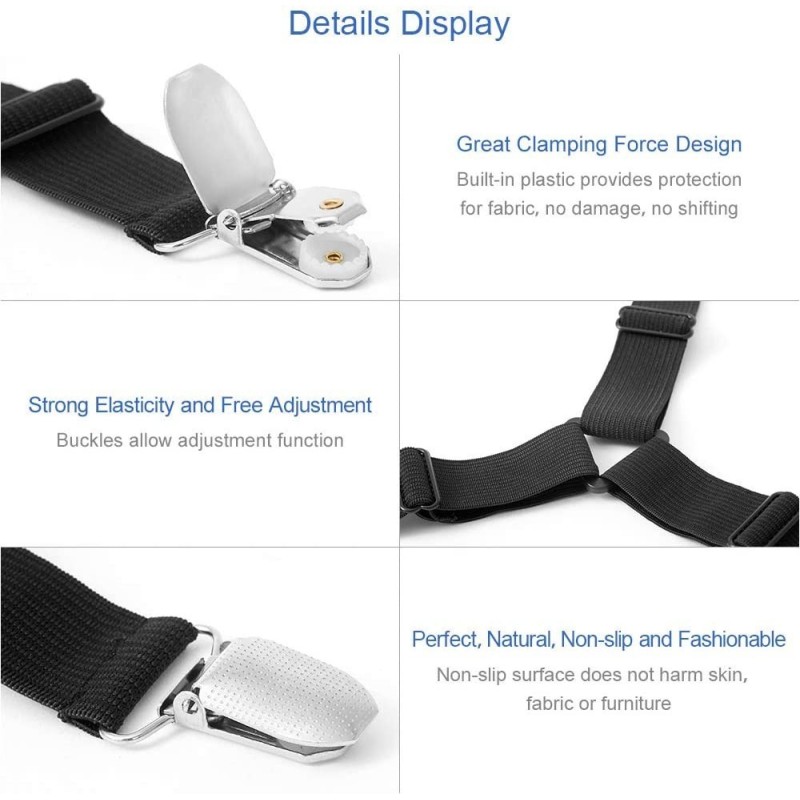 Тези щипки за чаршафи са изработени от здрав метал и ластик, което гарантира тяхната издръжливост и дълготрайност. В комплектът са включени 4 броя щипки, достатъчни за захващане на целият чаршаф или други текстилни изделия. Ширината на колана е 25 мм., а дължината може да се регулира от минимум 20 см. до максимум 58 см.