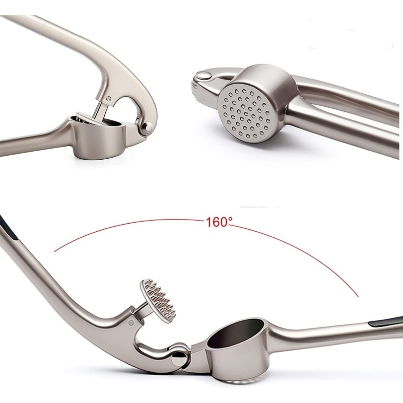 Тази домакинска преса за чесън е идеалното решение за удобно и лесно пресоване на чесънови скилидки. Просто поставете скилидката между двата лоста и ги притиснете заедно. С нашата преса за чесън, задачата на смачкване на чесъна става бърза и безпроблемна.
