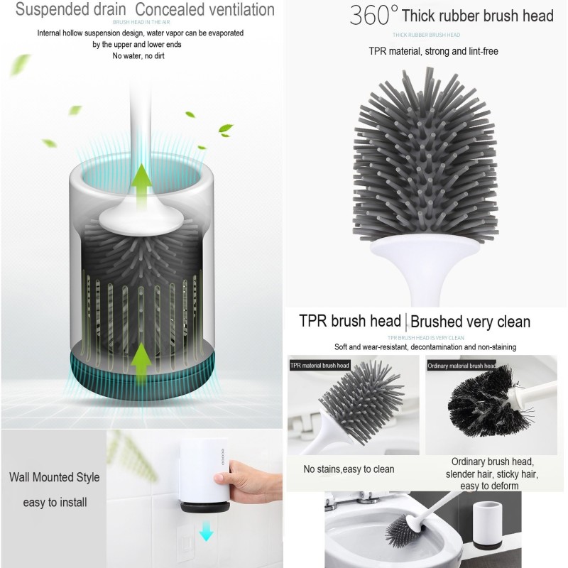 Силиконовата четка с поставка за тоалетна чиния - за стена и за под е перфектното решение за всяка баня или тоалетна. Този модерен продукт е създаден съобразно последните дизайнерски тенденции и се отличава с практичност и функционалност.