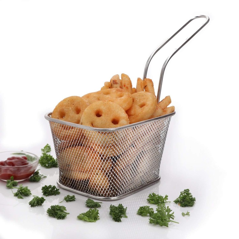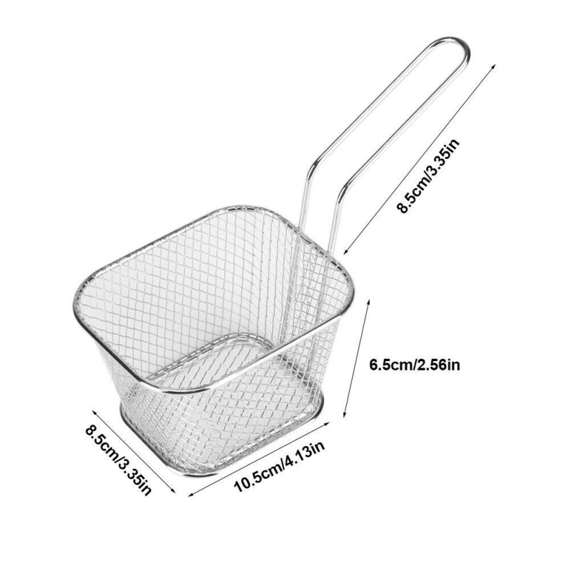 С размери 10.5*8.5*6.5см и удобна дръжка с дължина 8.5см, тази кошничка е перфектно съобразена за лесно и удобно сервиране.