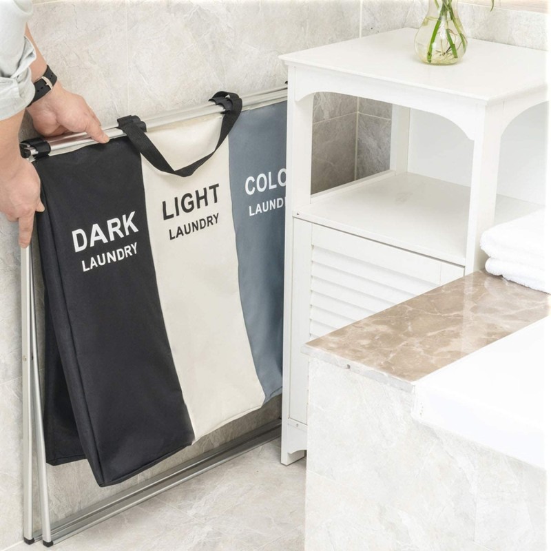 Иновативният сгъваем кош за пране с 3 отделения е перфектното решение за всички, които искат да запазят реда и организацията в банята или пералното си помещение. Този практичен сортер разполага с 3 отделни торби за пране, които ви позволяват да сортирате вашето бяло, черно и цветно пране с лекота. Така можете да спестите време и да се насладите на по-голям комфорт при изпълнението на задачите си.