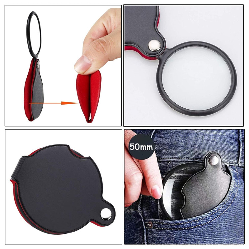 Със своите компактни размери в сгънато положение - 7,2 * 5,5 * 1 см, тази лупа е лесна за съхранение и носене във всяка джобна или чантичка. Комплектът включва и кожен калъф, който не само предпазва лупата от наранявания и надрасквания, но и я прави лесно достъпна по всяко време.