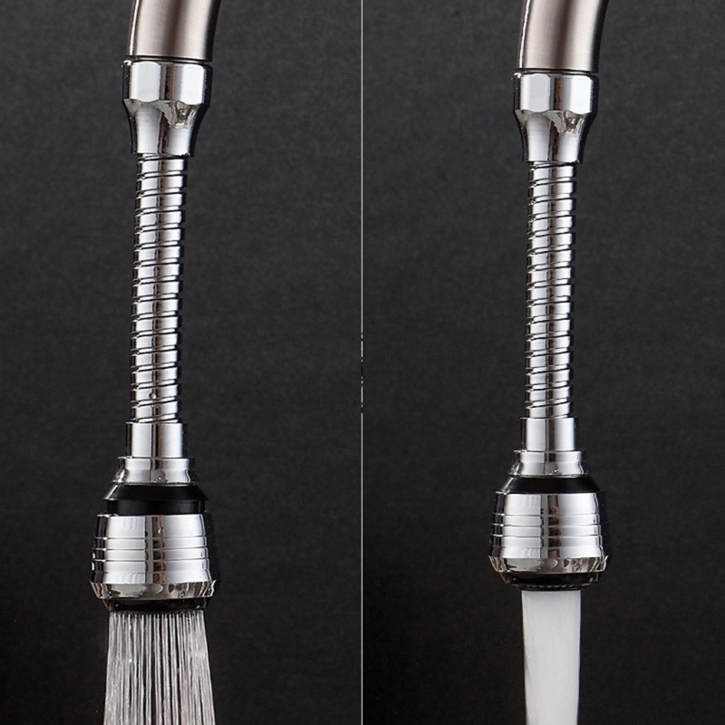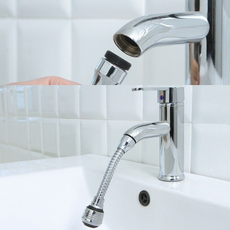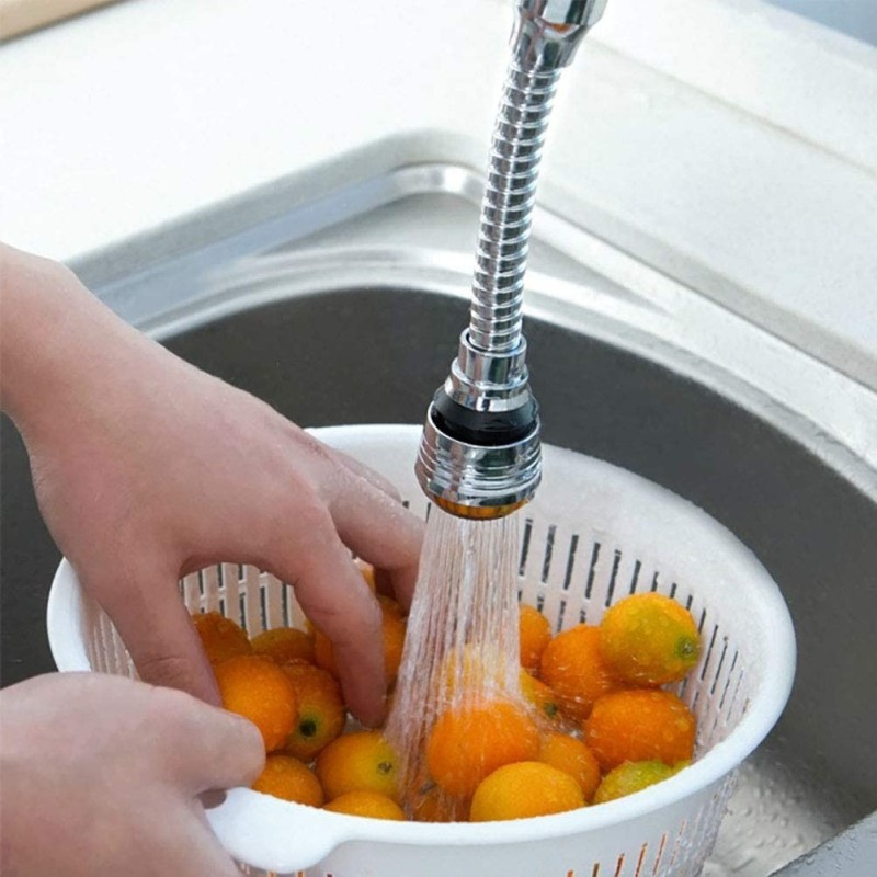 Удължителят за чешма може да се върти на 360 градуса, позволявайки ви да миете съдове, плодове и зеленчуци с лекота. С него ще можете да достигнете труднодостъпни места, които обикновено са трудни за почистване. Освен това, той променя вида на водната струя с единствено натискане на бутон, предлагайки ви възможността да избирате между широка и тясна струя.