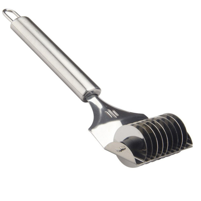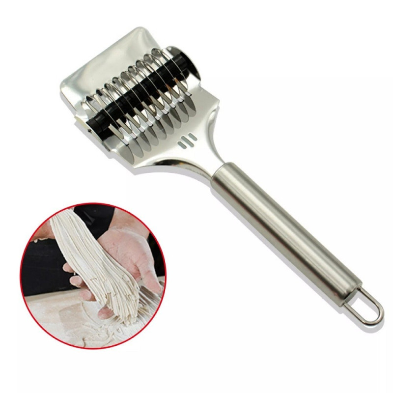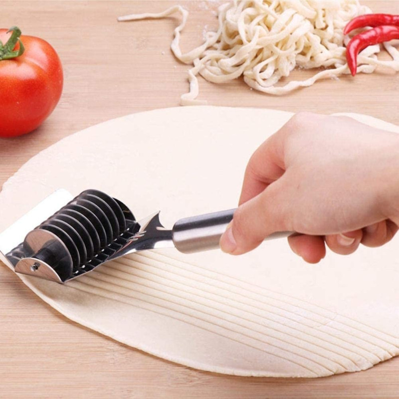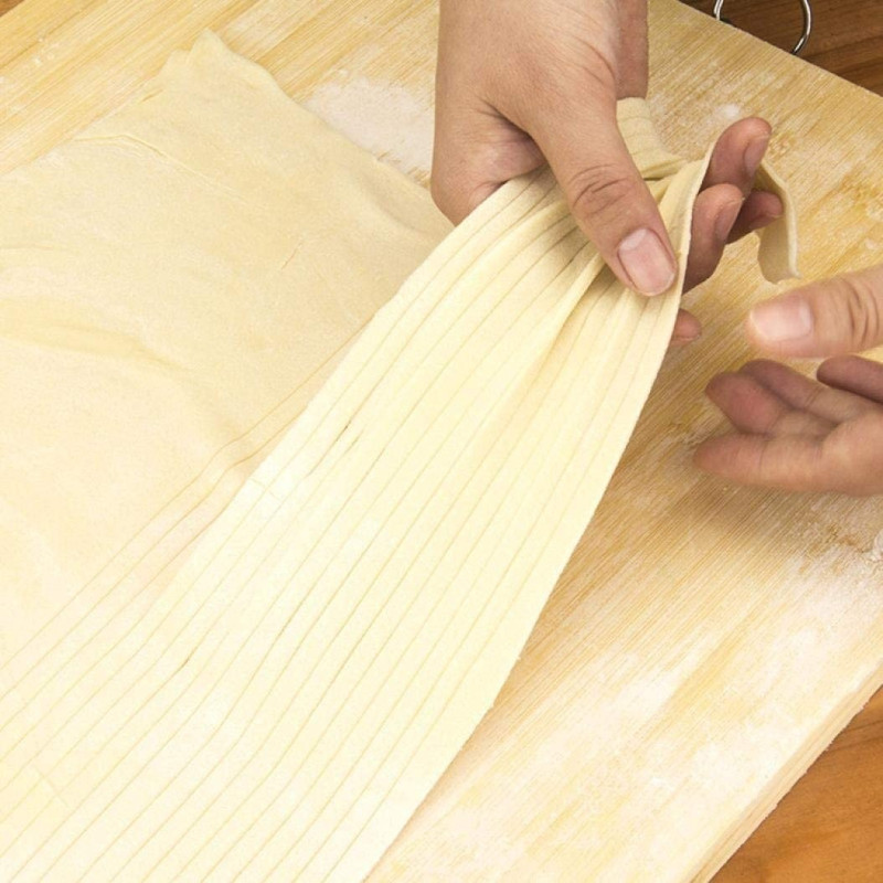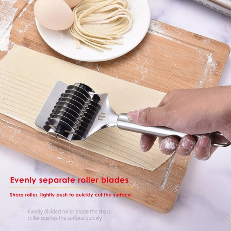 Ролковият нож за рязане на тесто за паста е перфектният помощник за всеки кулинарен експеримент. Този удобен аксесоар е идеален за приготвянето на разнообразни ястия като фетучини, талиатели, лазаня, тортелини, равиоли, пръчици, бисквити и тригуни.