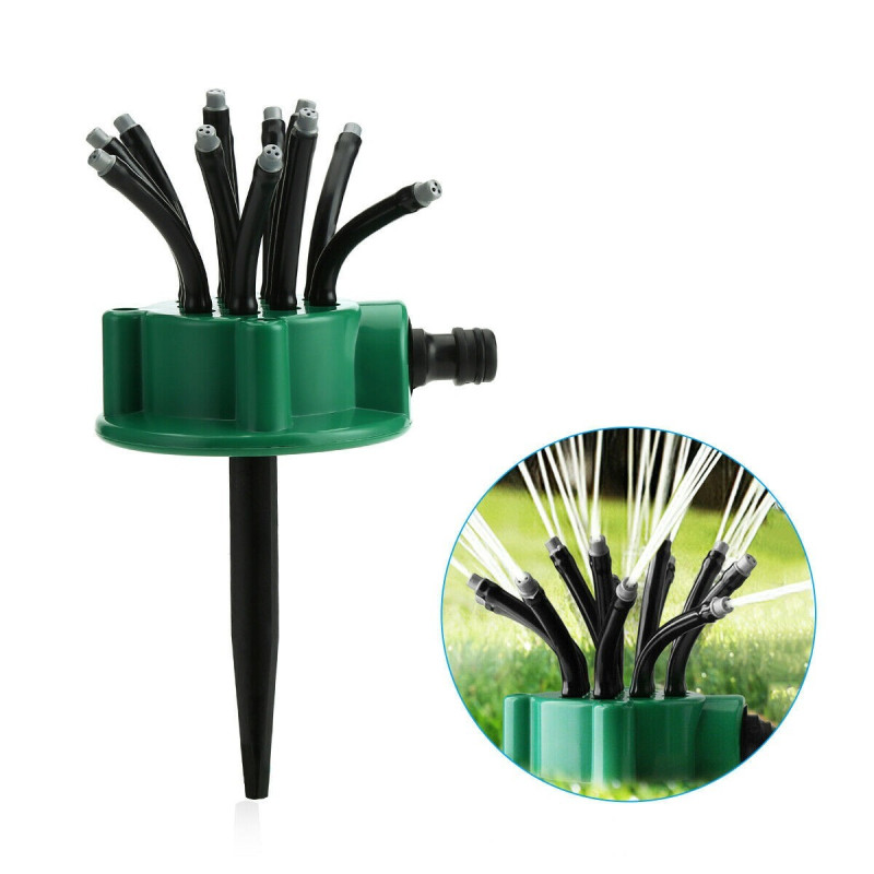 Инновативната гъвкава 360 градусова пръскачка е идеалното решение за поливане на тревни площи и градини. Тази пръскачка е подходяща както за вила, така и за къща и осигурява пълно покритие на напояването благодарение на своите 12 издадени дюзи, които могат да се позиционират по желание.