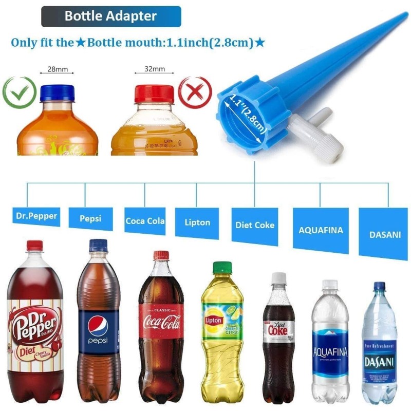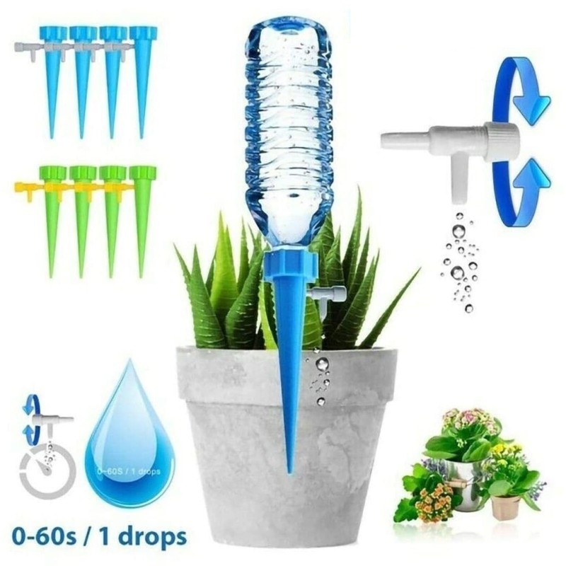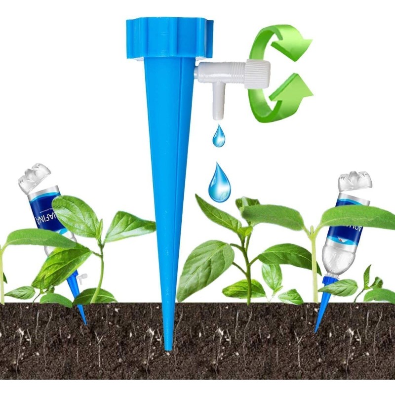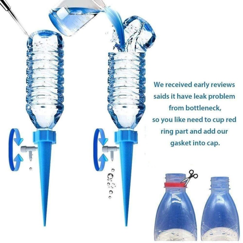 Използвайки тази система за поливане на саксии, можете лесно да контролирате количеството вода, което отива в почвата. Просто поставете пластмасовата част в почвата и пълна бутилка с вода върху нея. Регулирайте клапана, за да контролирате времето, за което водата се освобождава. Системата може да достави нужното количество вода за до петнайсет дни и е изключително лесна за използване.