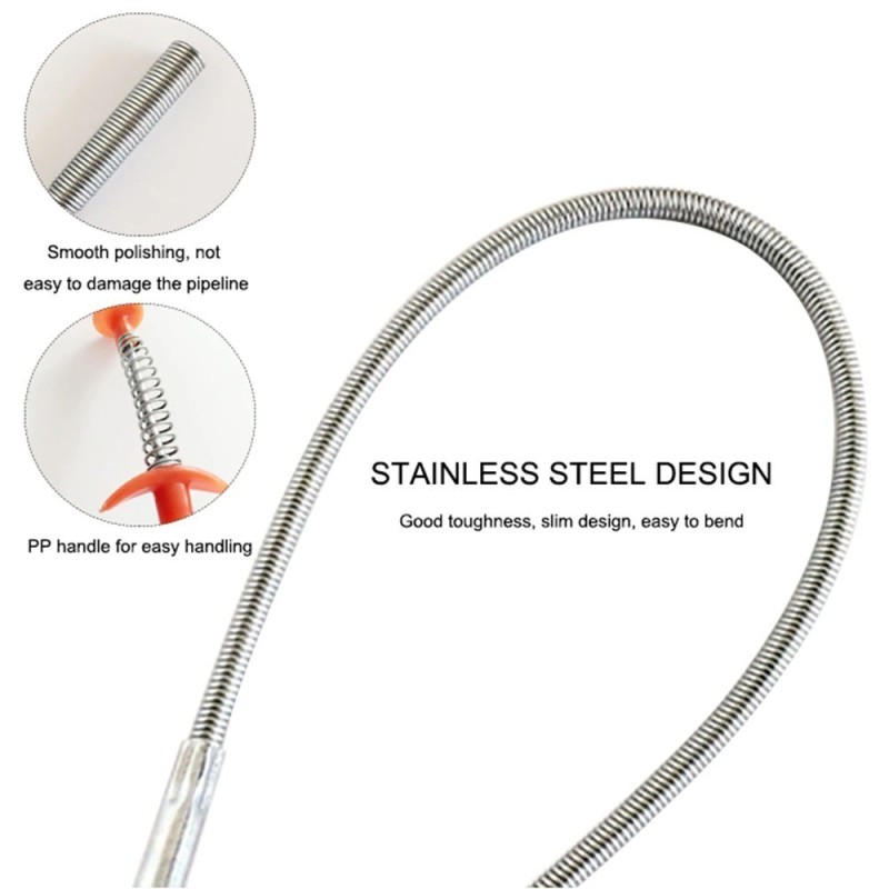 Неговият пружинен издърпващ механизъм ви позволява лесно да отпушите запушените сифони, премахвайки косми и други пречки. Но това не е всичко. Този уред може да се използва и за улавяне на дребни предмети, като например паднали винтове или болтове, както и за изваждане на малки предмети от труднодостъпни места.