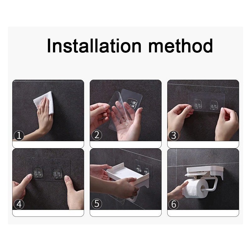 Представяме ви нашата нова многофункционална самозалепваща поставка за тоалетна хартия. Тази елегантна и практична поставка предлага не само място за тоалетната хартия, но и допълнително райе, в което може да поставите своя смартфон или друг аксесоар.