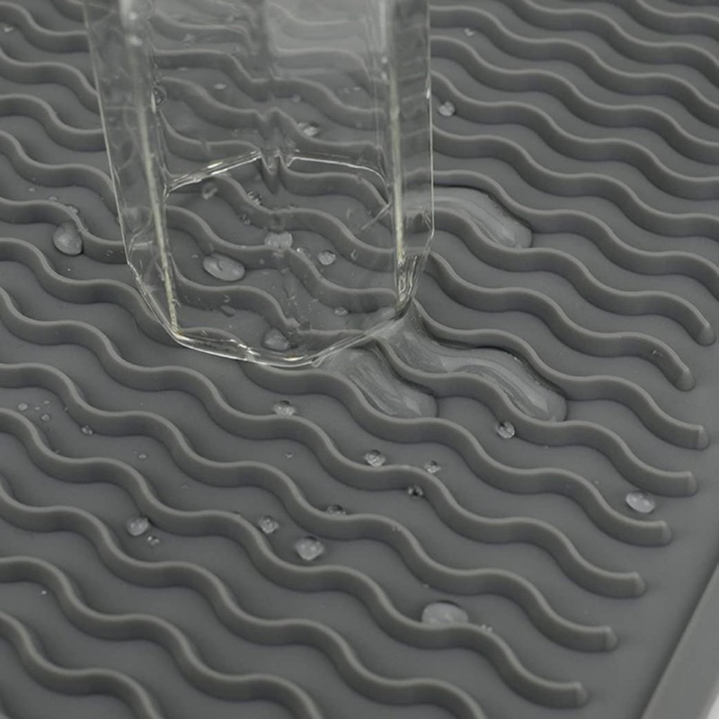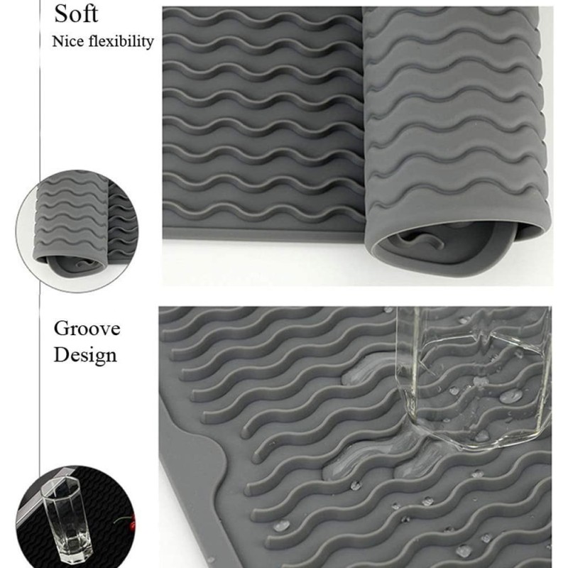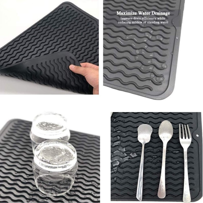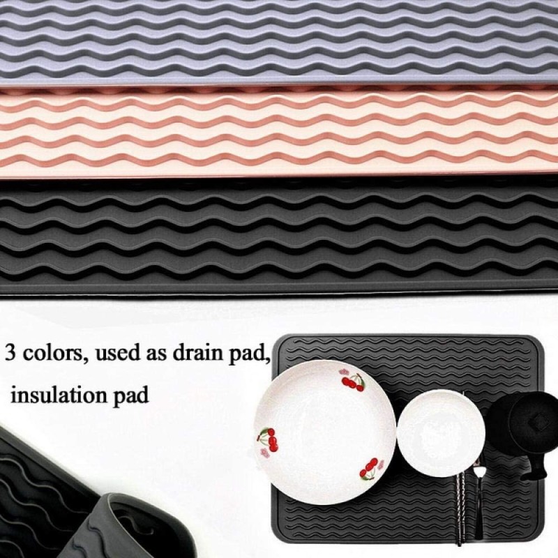 Тази подложка е подходяща за отцеждане на всякакви съдове и прибори за готвене и хранене. Нейният висококачествен силикон и изработка гарантират, че не надира повърхностите и не се хлъзга. Подложката може да се почиства и в съдомиялна, без да се захабява.