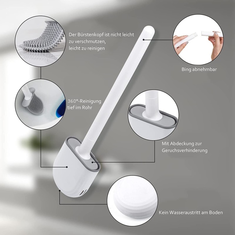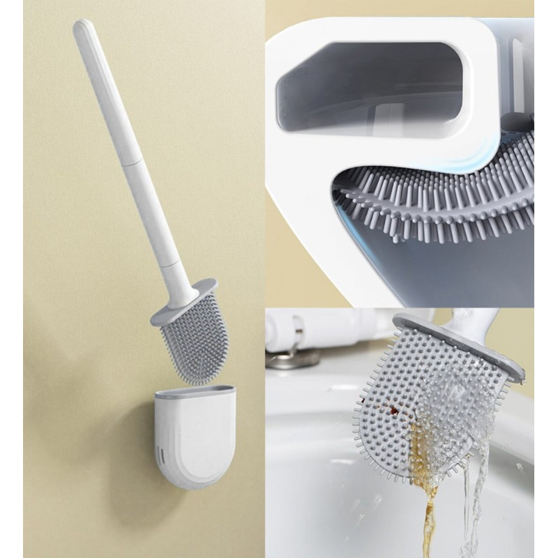 Силиконовата четка за тоалетна със стенна поставка е истински иновативен продукт, който ще направи почистването на тоалетната лесно и ефективно. Тази революционна четка е оборудвана с гъвкава, D-образна глава, изработена от малка силиконова четина, която осигурява най-добрата почистваща способност. Тя ви позволява да почиствате и достигате до всички части на тоалетната, включително труднодостъпните ъгли и под клекалото.