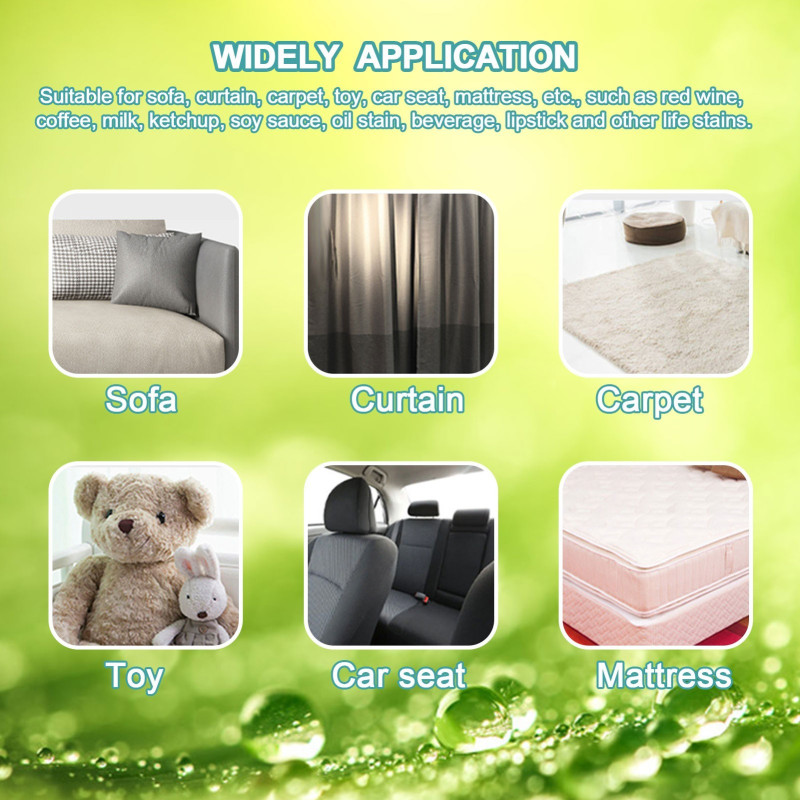 Специалната формула на пяната е създадена да нежно отстранява замърсяванията без да вреди на текстила. След употреба, вашите мебели и текстил ще останат свежи и приятно ароматни. Забравете за неприятната миризма от цигари, домашни любимци и други.