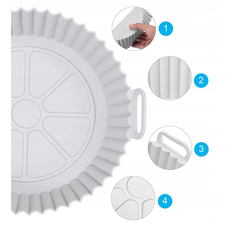 Тази практична силиконова форма е специално проектирана за използване в еър фрайър и предлага незалепващо печене. С нея можете да приготвяте разнообразни ястия - от хляб, кифлички, до пилешки крилца, без да се притеснявате за залепване или загуба на храна.