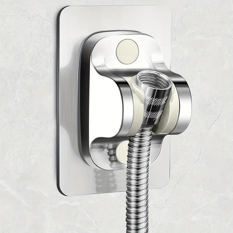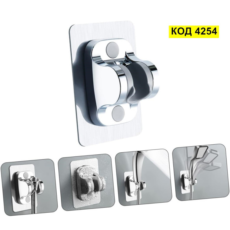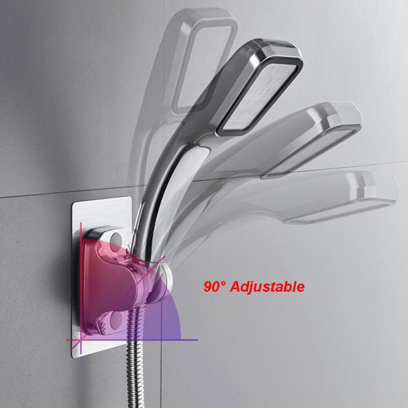 Лепяща поставка за душ с механизъм за регулиране на ъгъла на душ слушалката и монтаж без пробиване Самозалепващата се поставка слушалка за душ е влагоустойчива и издръжлива на различни промени в температурата. Направена е от висококачествена пластмаса. Монтира се лесно без да има необходимост от пробиване в стената – чрез защитното фолио, което се намира на гърба на лепенката. Освен това, ако желаете да го махнете той се отлепя лесно.