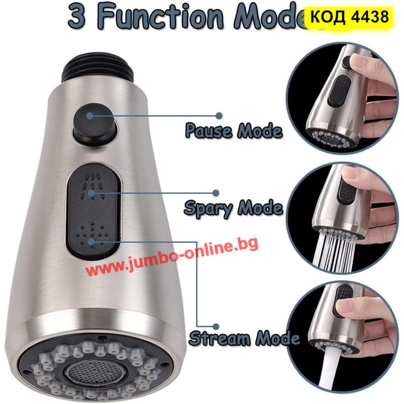 3 функции (дъжд, силна струя и стоп на водата)