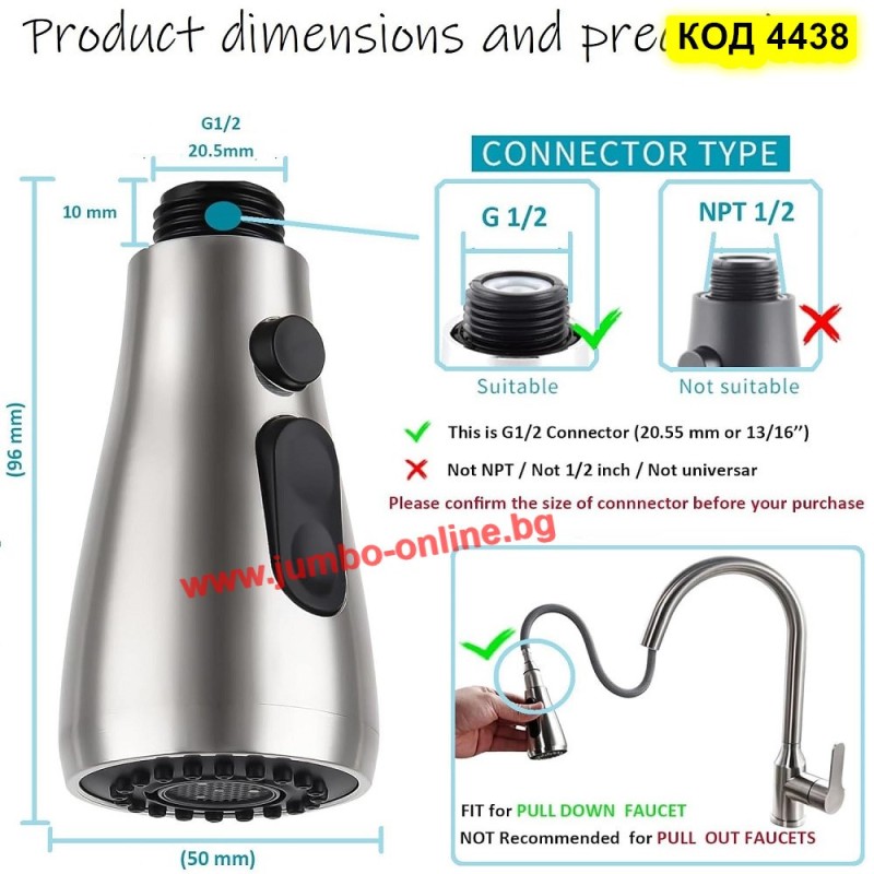 Резервна разпръскваща глава аератор за кухненски кран