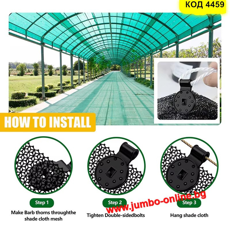 Тези щипки са подходящи за градински, селскостопански и индустриални приложения. Независимо дали използвате мрежа за сянка в двора, оранжерията или върху терасата, щипките ще я държат стабилно опъната и защитена от разкъсване. Те са леки, но здрави, което улеснява монтажа и осигурява дълготрайна употреба.