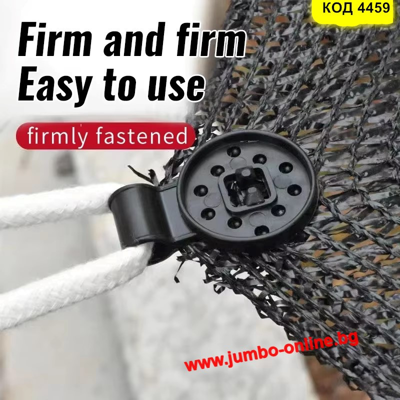 Кръгли държачи тип щипки са практично решение за лесен и стабилен монтаж на засенчващи мрежи. Те са изработени от висококачествена пластмаса с UV защита, което ги прави устойчиви на атмосферни условия като силно слънце, дъжд и вятър. Дизайнът им осигурява здраво захващане, без да поврежда мрежата, а кръглата форма позволява лесно фиксиране към различни конструкции – въжета, метални или дървени рамки.