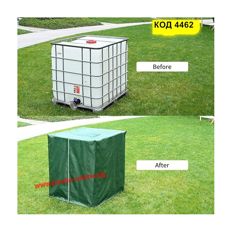 Покривалото е проектирано за стандартни IBC резервоари с вместимост 1000 литра и пасва плътно, осигурявайки ефективна защита през цялата година. Благодарение на материала си, то предотвратява загряването на водата и образуването на водорасли, което го прави особено подходящо за съхранение на дъждовна вода. Идеално решение за градини, ферми, строителни обекти или всяко място, където е необходима чиста и защитена вода.