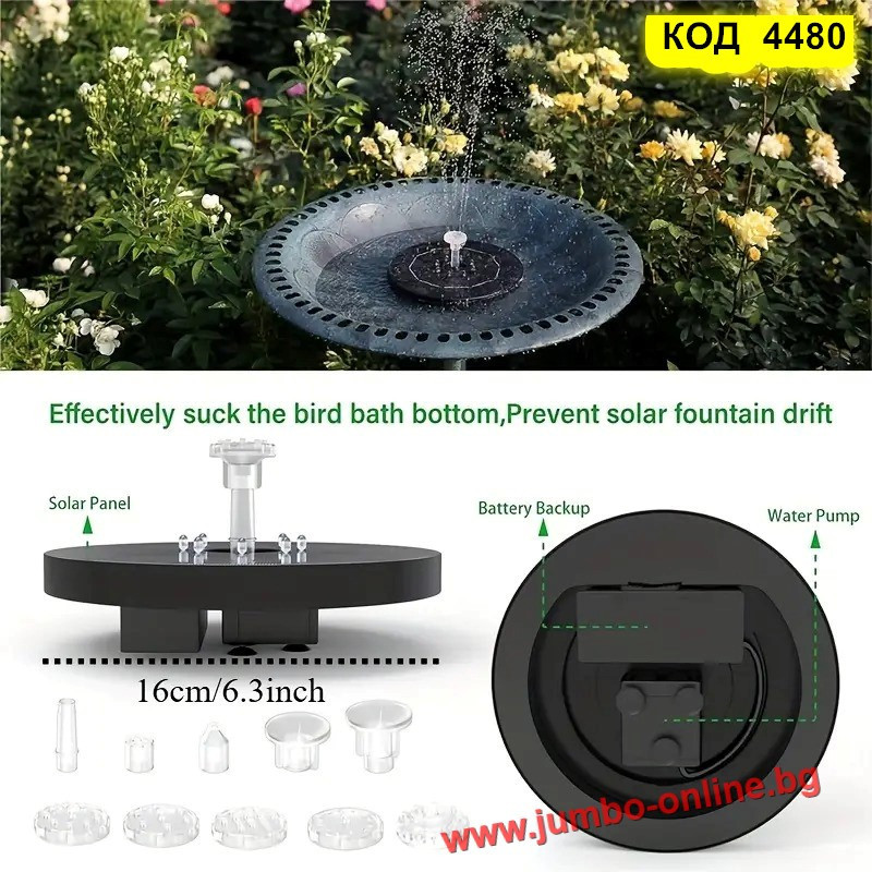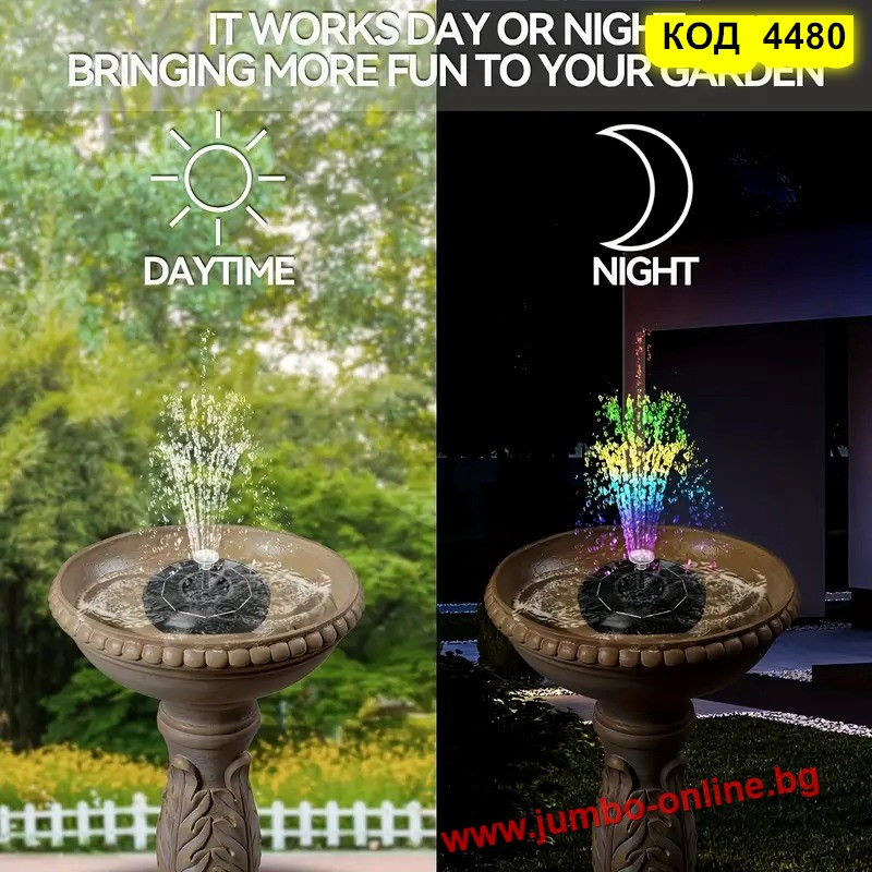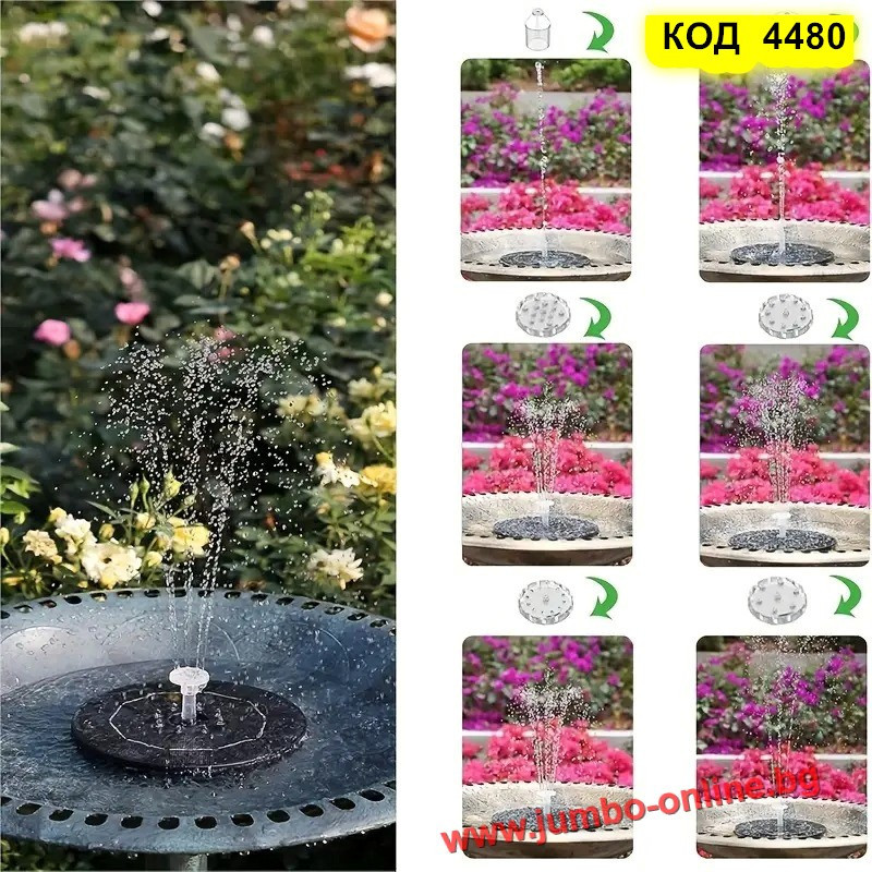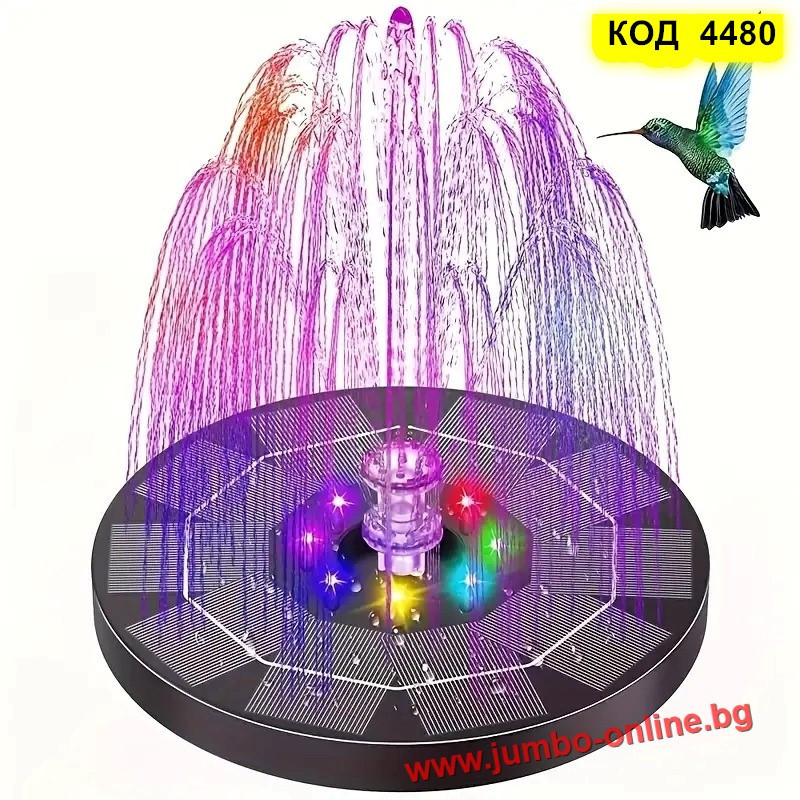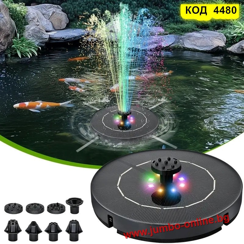 Потопете се в магията на водата и светлината с този соларен фонтан с LED осветление – перфектен акцент за всяка градина или двор. Работи напълно автономно, без нужда от ток и кабели – просто го поставете във вода и оставете слънцето да свърши останалото.