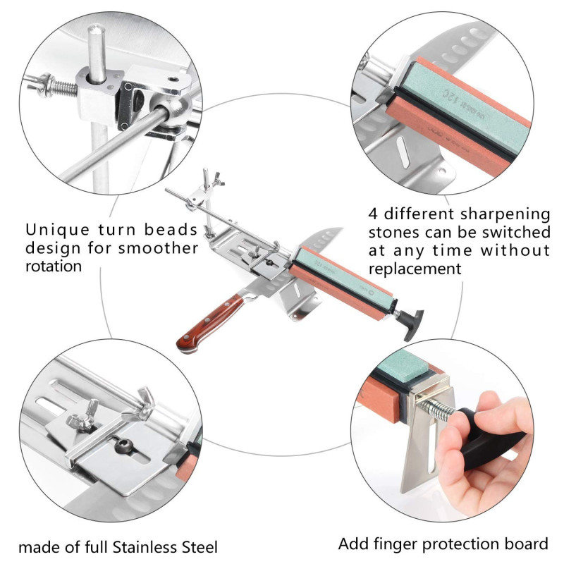Професионално точило за ножове с фиксиран ъгъл с 4 бр. къмъка - захващне със стяга