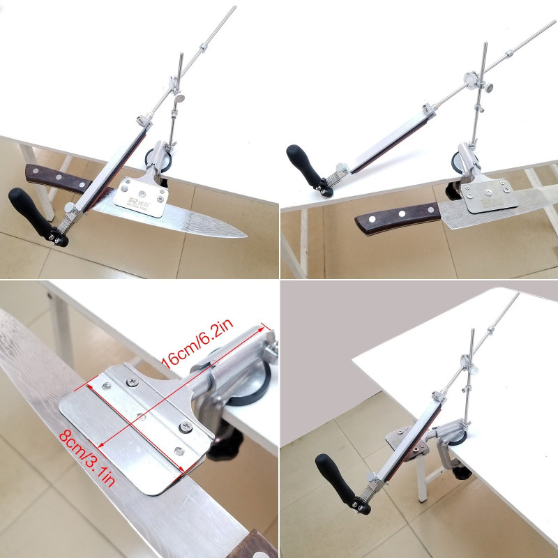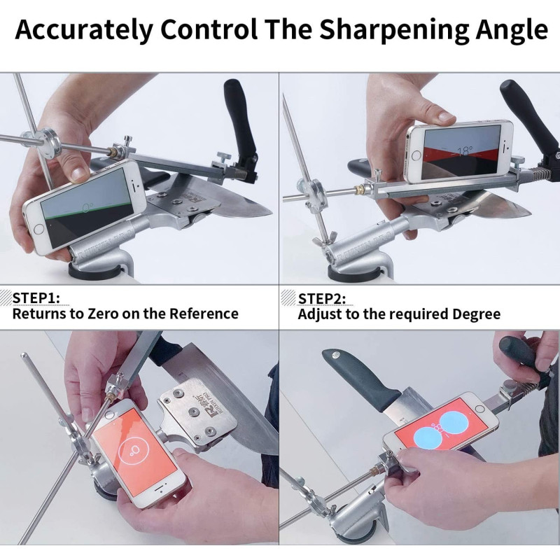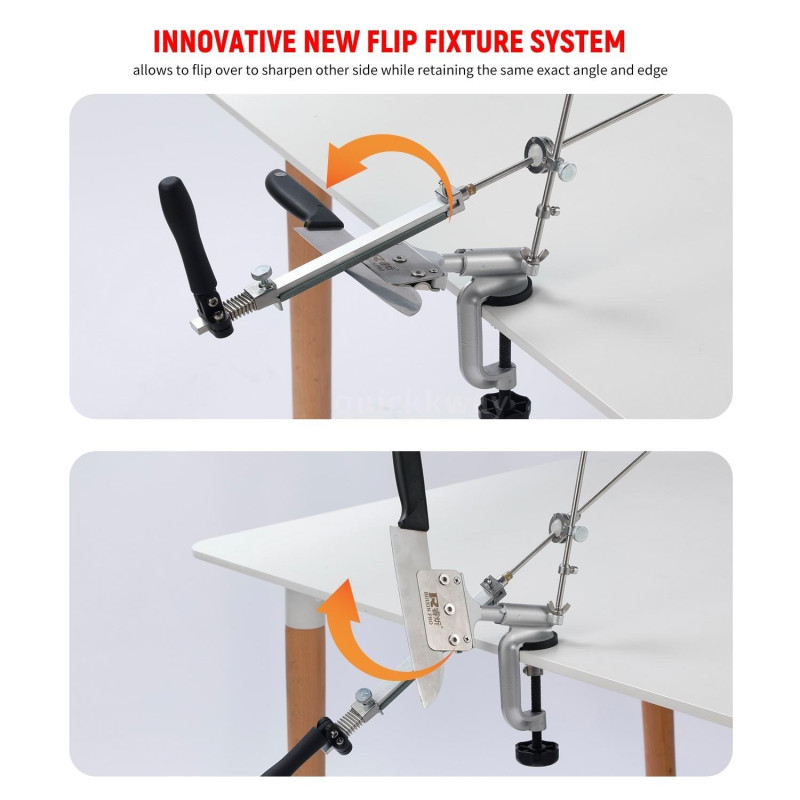 Професионалното точило за ножове и ножици има фиксиран ъгъл който се регулира от 5 до 90 градуса. Предлагат се 2 модела на заточваща система с фиксиран ъгъл: модел 1 е за ползване върху плот, а модел 2 е със захващане за плот, който стяга, тип менгеме. Цените на двата модела са различни! Към модел 2 ще получите и чантичка с цип за съхранение. Точилото за професионално заточване е изцяло стоманено.