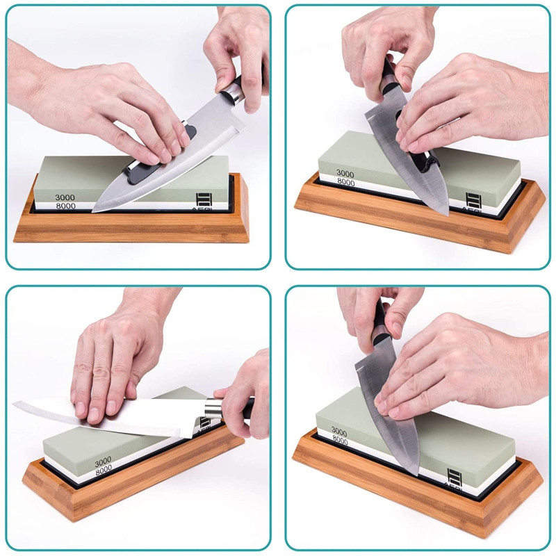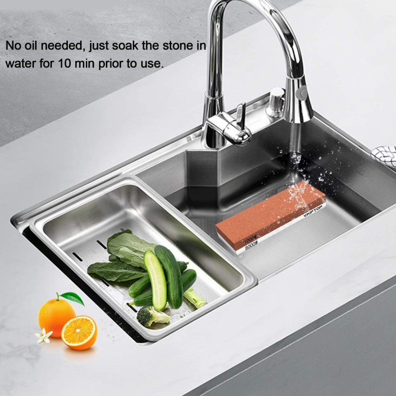 За да използвате бруса, просто потопете плочките с грапавост до #3000 във вода за 10-15 минути (предпочитайте солена вода). Плочките с грапавост над #3000 само се напръскват с вода. След като сте заточили ножа, просто почистете го с мокра кърпа или го изплакнете с вода.