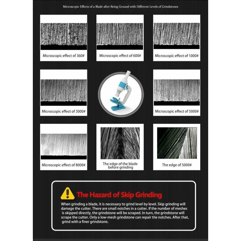 Гритът на плочките варира от 200 до 12000, което ви дава възможност да извършвате както основно, така и фино заточване. Плочките с по-нисък грит са подходящи за силно затъпени ножове, докато тези с по-висок грит са идеални за полиране и заточване на ножове, които искате да режат като бръснач.