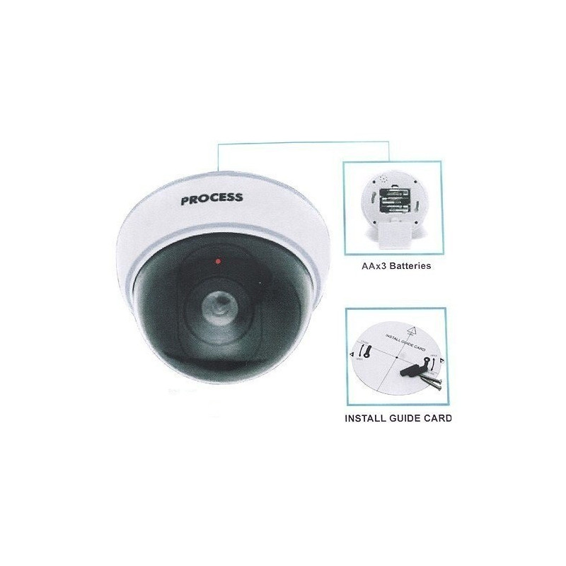 Бутафорната куполна инфрачервена камера с бял пръстен е идеалното решение за тези, които искат да повишат ефективността на видеонаблюдението си, без да изразходват голяма сума пари. Тя има неразличим дизайн спрямо истинските камери за видеонаблюдение и дори разполага с червена мигаща LED светлина, която я прави да изглежда и работи като истинска охранителна камера.